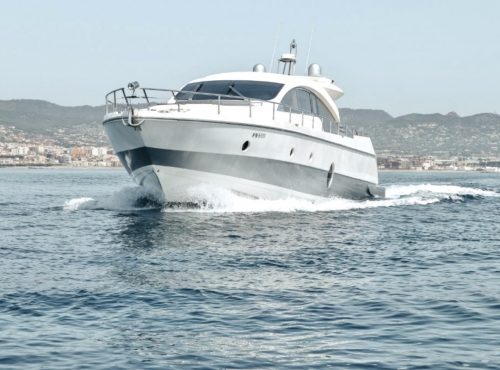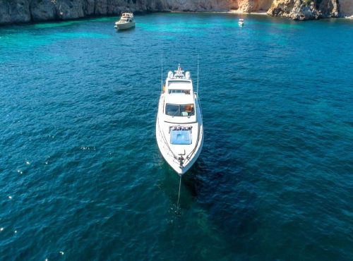 Disfrute el equilibrio perfecto entre lujo, velocidad y estilo a bordo del emblemático Mangusta 72 y descubra las hermosas Islas Baleares.