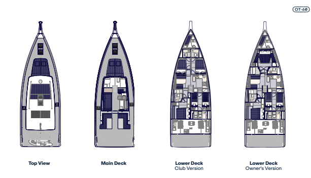 Renowned naval designers Juan K. and Lorenzo Argento have developed the OT-60 with a revolutionary approach: creating a sustainable, efficient, and stylish yacht with exceptionally low consumption. Designed for sailors who cherish the journey as much as the destination.