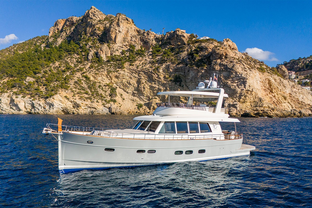 This Sasga 68 Flybridge represents the classic design of a traditional menorquin Llaut upsized to create a modern luxury cruising experience. The flybridge was completely customized by her German private owner and is now equipped with a huge BBQ & wet bar, two seating areas and a GRP hard-top roof including a electric sunroof. It is immaculately maintained by her owner and current skipper.